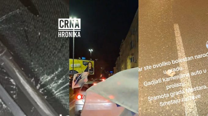 Na videosnimku koji kruži društvenim mrežama vidi se oštećeni automobil sa razbijenim vjetrobranskim staklom, dok se u pozadini može čuti i poziv upućen policiji.