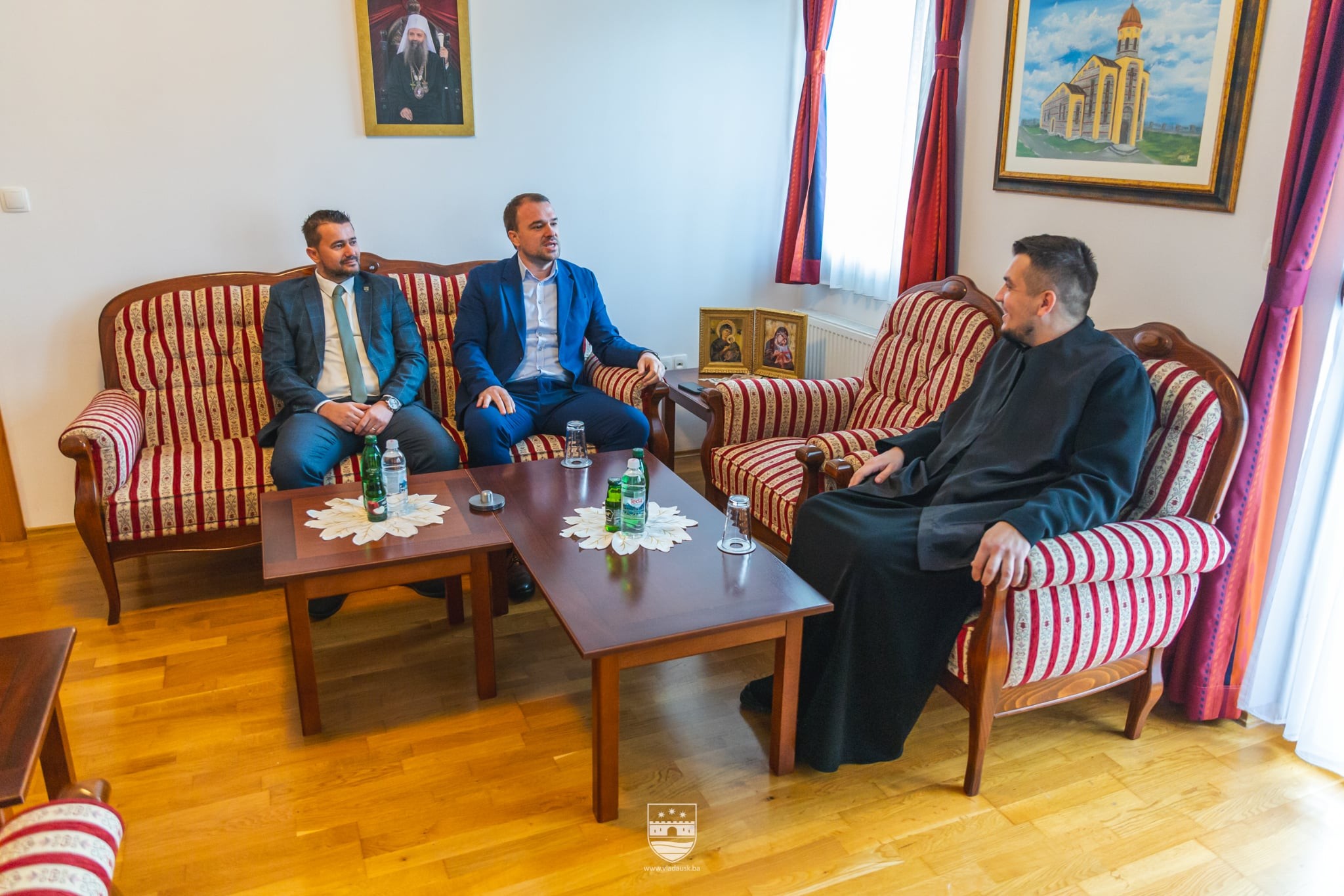 Ministar obrazovanja, nauke, kulture i sporta Unsko-sanskog kantona Denis Osmankić i ministar finansija u Vladi Unsko-sanskog kantona Danko Jakšić posjetili su danas parohiju bihaćkog paroha Slaviše Milinovića.