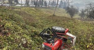 Saobraćajka u Cazinu, traktor završio na krovu