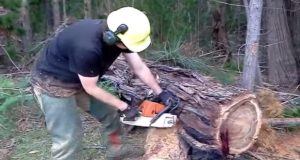 Uzeo je motorku i počeo da reže staro drvo. Nekoliko sekundi...