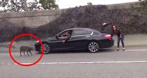 Zaustavili su na autocesti. Pogledajte šta je uradio preplašeni Pitbull… (VIDEO)