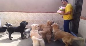 Izašao je u dvorište da nahrani ovih 7 gladnih pasa, no...