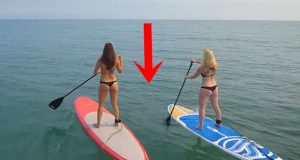 Dvije djevojke u bikinijima veslale su na surferskim daskama. Čekajte da...